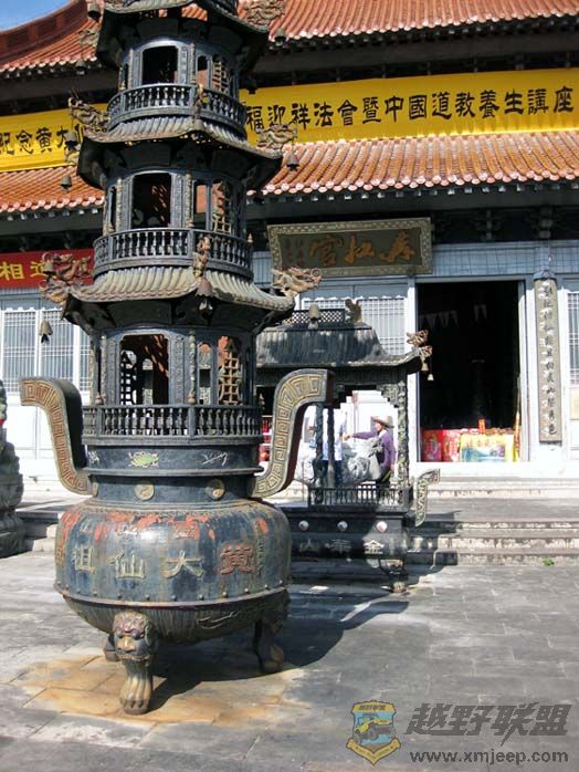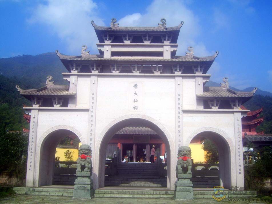 ' W' e. D' ]0 r3 K第二天上午忙事情,下午热情的主人开车带我们去游金华最出名的两个景点----黄大仙景区和双龙洞景区。车子在浙中的大山七里八拐,绕得我头晕才到达金华山。黄大仙祠在一片山坳里步步登高,颇有几分气势。黄大仙在香港是香火最盛的神仙,但在大陆似乎名气不是很大,包括我在内的许多人对其仙踪知之甚少。今天登上金华山,才知道黄大仙是在此金华山升仙的。