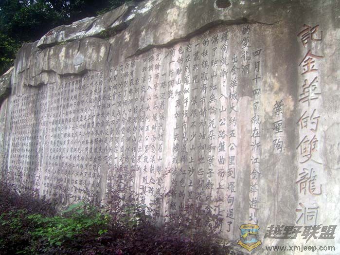 & p5 {0 ?+ u$ ^: E% I, k% Z) D沿山路返回,双龙洞很快就到了。双龙洞的名气说大不大,说小不小。说大呢,是在小学四年级第八册的语文课本里,就有叶圣陶先生写的小游记《记金华的双龙洞》,无数中国人在孩提时代就知道双龙洞了。景区门口一座小小的纪念馆,是**他老人家来过双龙洞的见证哦。而说小呢,是这些阅读过叶老课文的小学生们长大后,大多没再听说过、更没亲身来体验双龙洞。我也是当看到景区入口处的石壁上铭刻的文章,才隐约记起那篇遥远的小学课文。