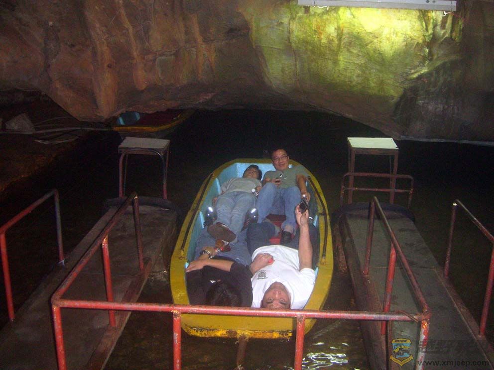 6 M& q& r4 [# Y. q7 ?, ^双龙洞的洞口颇是宽阔,可为山寨。进洞后左转,出现一洼水,前方一堵石壁,与水面仅有一尺来高的空隙,我们就将从这水上缝隙中钻过去。水中泊着一条只可容四人的小舢舨,舢舨前后各放着一块垫子。我们四个人小心翼翼地依次下到船里,然后平躺下,两个在前,两个在后。工作人员一再叮嘱躺好,头不要抬起来。船儿猛然往前滑动,眼前刹时漆黑一团。跟叶老的感觉相同,我也感到黑暗中似乎被什么东西挤压着,看来,人类对于黑暗的紧张感都是一样的。