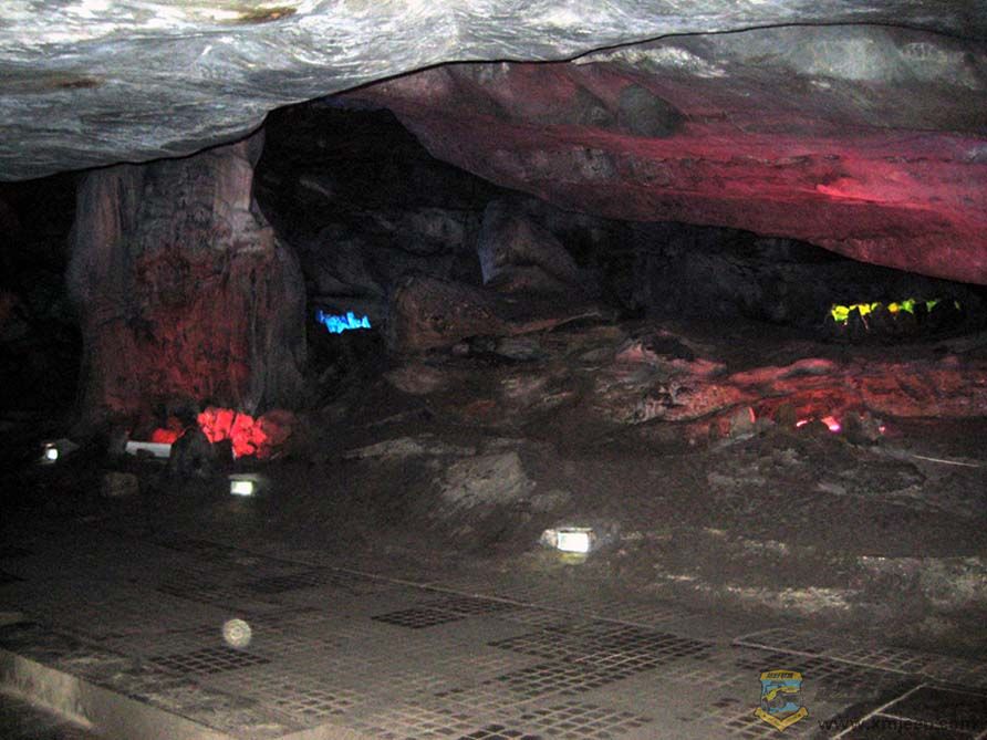 $ d0 e3 r6 [) C+ V2 G很快,仅几秒钟,眼前又豁然一亮,我们成功地通过水面的山底来到内洞。内洞与大多数溶洞大同小异,钟乳石的形状见人见智,比较出彩的是洞内两段高约二十米的大瀑布。瀑布水量相当大,水声哗哗,水汽喷溅,好似齐天大圣的水帘洞。