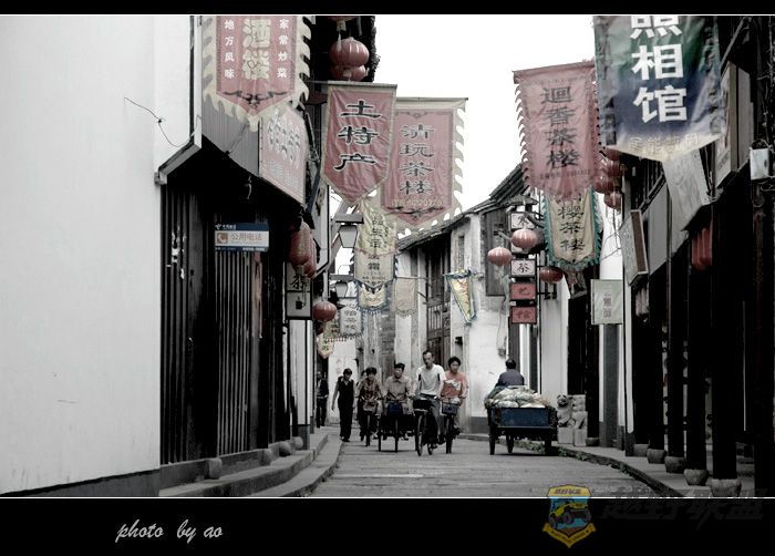 江南,总有些诗情画意,水乡里流淌着说不完的往事,而往事又如渺渺的清烟慢慢地升起,消失在刚刚苏醒的晨曦中,小船咿咿呀呀在水中前行,**妈妈带着牠的宝宝们很守纪律地排着队紧跟着小船。傍晚里,阳光西斜在水的尽头,月儿高升,船儿弯弯,弱弱的烛光和灯光剪下船中姑娘的倩影,而一帮顽皮的渔家小子,光着屁股从船上跳进河里,泛起阵阵天真无邪的欢笑声。