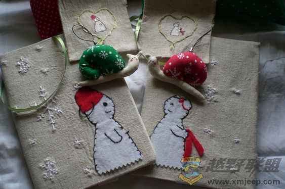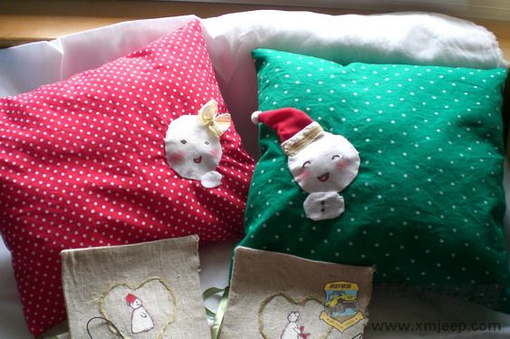 ; o$ e4 ^( p! b厦门越野联盟侣小抱枕——自己喜欢的布根据自己喜欢的大小做抱枕,贴布可爱雪人情侣图案