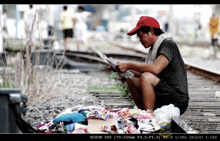 因为上回拍的《火车vs铁轨.恋曲2008》是早晨的,今天拍是傍晚的。同样的火车,不同的时间、不同的心情,是否也有不同的感觉?听奶奶说,有个画家画鸟就画了一辈子。。。就这样, 我给自己找到了下车拍照的理由。为了避免和上回照片风格相同,所以就把照片处理成LOMO风格、退色等怀旧的效果。。。