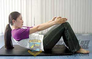 - X; P K$ ]' Y8 }2 L ★用嘴巴呼气,有控制地慢慢坐起来,腹部收紧,脚不要离地。