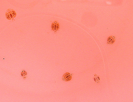 俺养了几条金鱼,有好几个月了,前几天换水,昨天突然发现鱼身上长了好多深灰色的小斑点,仔细看发现还能动,抓了几条下来,大小只有一到两毫米那么小,放在水里象跳蚤一样动个不停,俺搞不动是啥玩意,请认识的说说。。。。