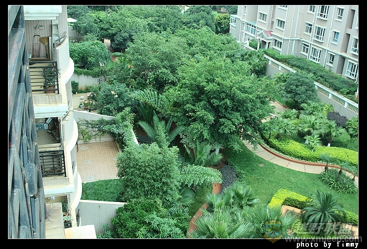 小区里的配套设施非常完善.这感觉非常公园.高大的树木中间有着连接楼房的长廊.旁边则是大大小小几个游泳池.据说泳池每天都有换水的.小区里的楼梯每天都有专人拖洗.同事笑言比自己家里更干净.