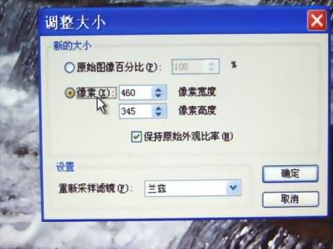 下面一个是[像素],选取这个项目-按图片的原始设置的分辨率(数码相机上的设置)来改变: