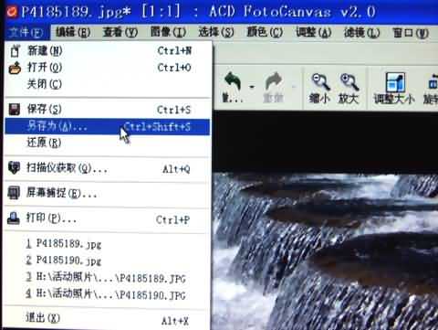 调整大小好了,就可以保存了,这里一定要记住一点,那就是如果你想保留原始的图片资料(未做处理之前就保存在电脑硬盘里的),就要选择[另存为~],具体操作如下图所示: