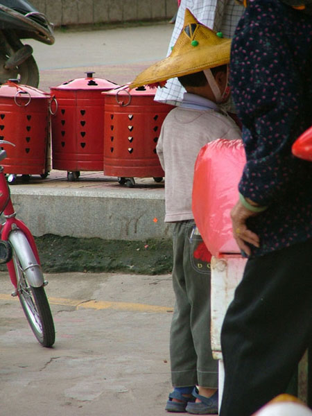 上周末回老家惠安,在车站拍到的,小男孩陪着母亲站在一个卖金纸(烧香用的)的摊