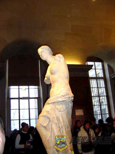 * I* [9 _, ?, J0 T 维纳斯(VENUS DE MILO,所以也叫米罗的维纳斯),这件高两米,上身半裸的雕塑是公元前古希腊的作品。据说,维纳斯在19世纪由一位希腊农夫发现,正巧此时法国人路过,想要买下此物。希腊农夫予以拒绝,于是他们开始争吵,结果在争吵中弄断了双臂……据回忆:双臂中的左臂是手持苹果置于左肩,右手则自然下垂。想来这样的维纳斯虽然让人不大适应,但想必也是非常美丽。