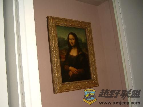 卢浮宫里最有名的画要数《蒙娜丽莎》了。它是由文艺复兴时期的著名意大利画家达•芬奇(Leonardo da Vinci)创作的。它高三尺,宽两尺,全名为《蒙娜丽莎的微笑》(Mona Liza Smile)。《蒙娜丽莎》和其他几幅画被放在了一个房间里,而《蒙娜丽莎》恐怕是卢浮宫里唯一一件占了整整一面墙的作品,这面墙上除了这件作品就没有其他的画了。蒙娜丽莎是位陆军中尉太太(当然关于她是谁是众说纷纭,有人说是达•芬奇的女友,还有人说是达•芬奇的自画像,还有更多奇怪的说法)。只要卢浮宫开放,这幅画前就会围满了人……十分拥挤。画在保险柜里,尽管透明,但是游客只能远距离观看, 保卫到处都是。这幅画前面有栏杆拦着,两侧还有各种各种高科技电子防盗报警设备监视,非常敏感,这是为了保证防盗和避免和观众过度接近。不准拍照和摄像,但是仍有不少人在拍,我也拍了一张,只是房间光线太暗,还隔着一层玻璃,加上不能使用闪光灯,拍出来的效果真的好差。
