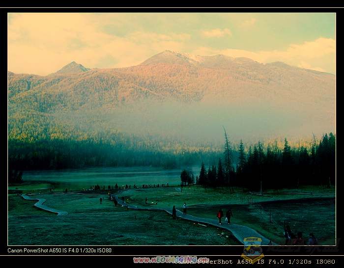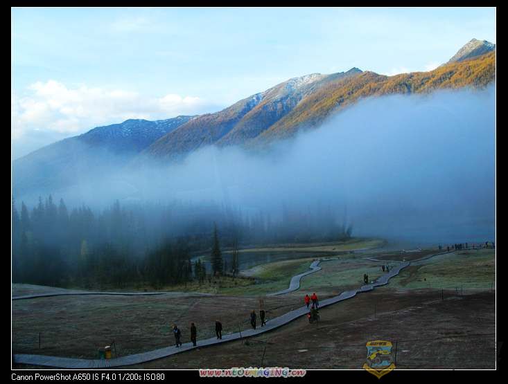 所以啊,大家看到的神仙湾带雾的都是我在游览车上抓拍的,算绝版了,因为野鹰、乡长和骆驼都没有拍到这难得一见的景色,虽然我的拍摄水平和他们相比只能算学生,可是这个景俺可是一直暗俺得意着呢。) r9 O6 q O7 r0 j. z8 j