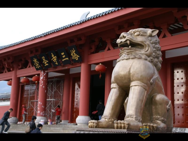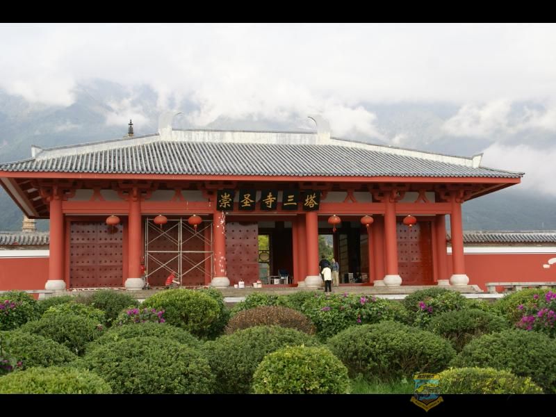 在大理三塔旁,原有规模宏大的崇圣寺。据史书记载,寺基方7里,圣僧李成眉贤者建三塔,屋890,佛11400,铜40590斤,建于公元834840年,耗金银布帛绫罗锦缎值金43514斤。崇圣寺及三塔建成后,寺院保存较好。元武宗时曾“降圣旨”封释觉性为住持僧,保护寺产,免征粮税。元代亦曾加以维修,明代李元阳重修,亦有“三阁、七楼、九殿、百厦”。当时寺中有五宝:三塔、巨钟、雨铜观音、证道歌碑和佛都匾。至徐霞客到大理时,仍见崇圣寺前“三塔鼎立,……塔四旁皆高松参天。其西由山门而入,有钟楼与三塔相对,势极雄壮”,楼后为正殿,正殿后为“雨珠观音殿,乃立像,铸铜而成者,高三丈”(《徐霞客游记《滇游日记八》)。然世事沧桑,巨钟已毁于清,雨铜观音毁于十年**,证道歌碑与佛都匾连同寺院一起,今已无存。崇圣寺毁于清朝咸丰年间。直到今代,才由云南大理旅游集团出资1.9亿元人民币重建的崇圣寺,建成后的崇圣寺气势飞宏、建筑工艺精湛,整个崇圣寺于2006年建成正式向游客开放。