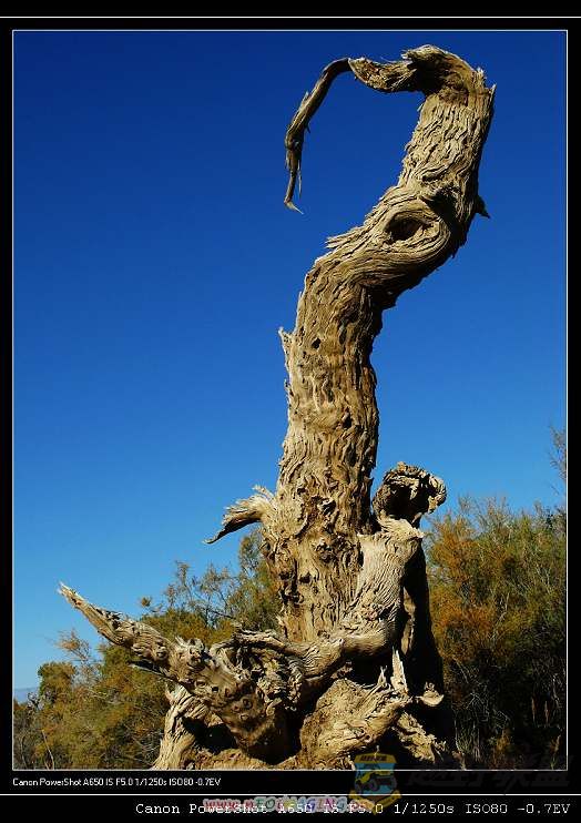 这棵胡杨树很奇妙,正面拍象一只雄鹰,侧面拍却变成了丹顶鹤!