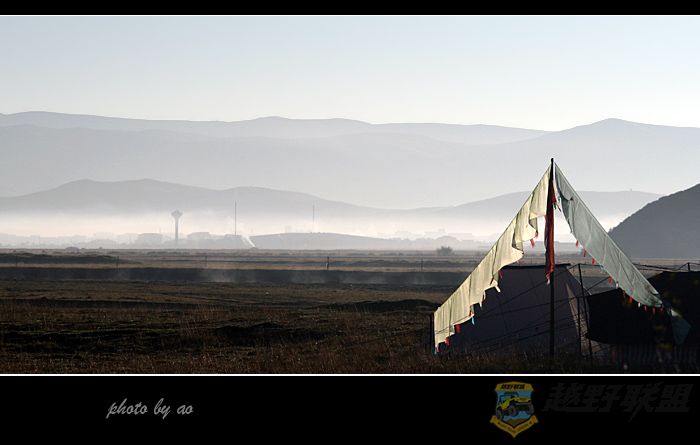 红原上流淌着美丽的月亮湾,一大早我们爬起来本来想去看月亮湾的日出,结果刚一出门,便碰上了磕长头去西藏的藏民,高哥把车停下来,大家一阵猛拍,藏民的额头一片暗红,长长的山路没有尽头,不知是什么信念支持着他们一步一磕走向西藏的,我只知道远方的经幡是指明他们前进的方向。
