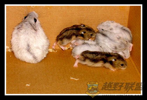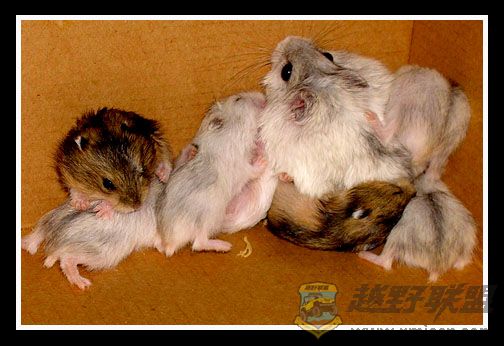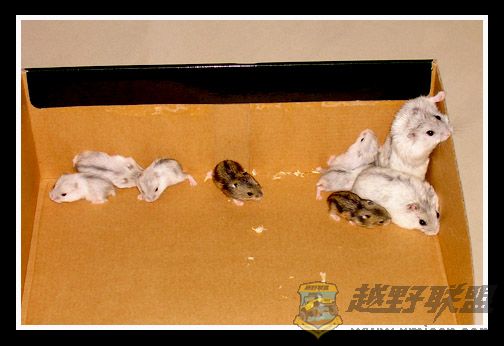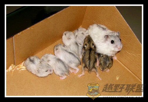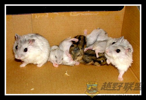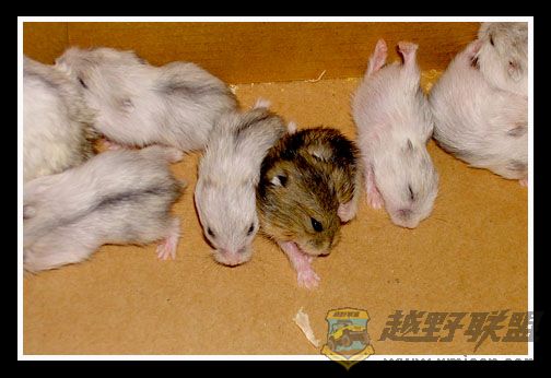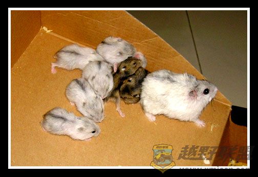 年初,俺家宝贝女儿养了两只仓鼠,母的是银狐,公的是紫仓,几个月后居然一胎生了四只小银狐,转眼过了几个月,这对英雄的老鼠公老鼠婆又一胎生了八只,其中两只是紫仓,六只是银狐,晕死,俺估算了一下,照这速度,一年后,俺们家就变鼠窝了.不过,这些小精灵还是蛮可爱的,憨憨的样子,有时很乖,有时也很调皮,一天到晚总是吃了拉,拉完再吃,吃累玩累了就睡,偶尔争食的时候也会咬咬架,吱吱叫个不停.厦门越野联盟* l9 ]& l: F# I% ^' a3 ^! P& P