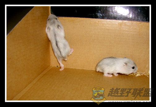 同窝的仓鼠多数相安无事,和睦相处,但品种不用或临时圈养在一起的仓鼠也会象其他动物一样掀起领土保卫战,对新来的仓鼠会群起而攻之,仓鼠嘻闹或打架的时候会两腿直立,象两只企鹅一样面对面虎视眈眈,两个前爪象打拳击似的抓对方的脸,冷不防就龇牙咧嘴地咬上一口,打输或战败的仓鼠就会四脚朝天,肚皮朝上的举手投降.仓鼠性情多数很乖,任你抓在手上抚摸玩耍,不会咬人,但有时急了也会咬人,一般是在争食的时候,尤其是在打架打急了的时候,特别注意不要直接用手去抓,那时再温顺的动物也顾不上你是主人了,它就逮谁咬谁胡乱咬了.1.jeeplive.com; @ D* E( K( e, b0 H6 |