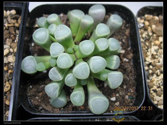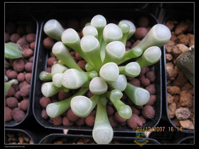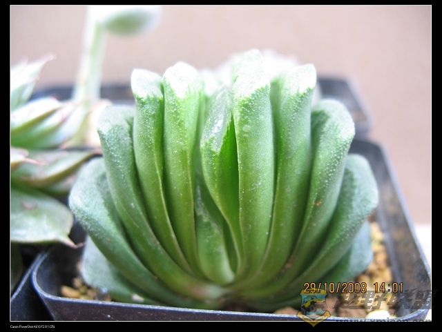 第三个登场的,就玉扇吧!和玉露一起买的,也养了一年多啦!是上海买来的小苗,来时1.5cm.现在大概5cm左右.不过养得没有玉露好.1.jeeplive.com( o% j4 J6 J7 ~+ d