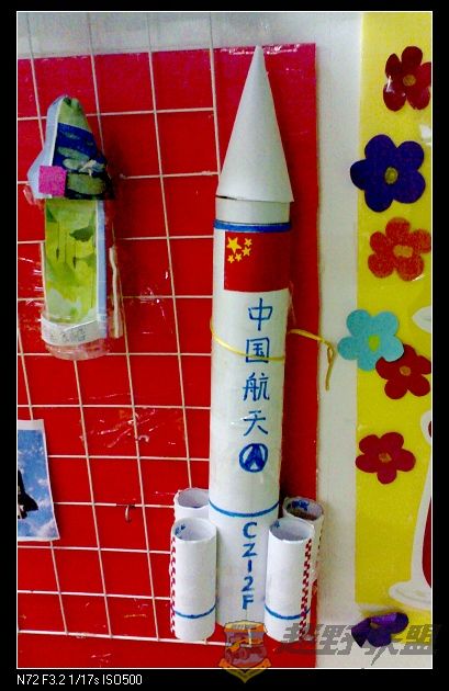 制成后的火箭,头掉下来挂在墙上没装好所以看起来有些裂缝,如果装回去就可以