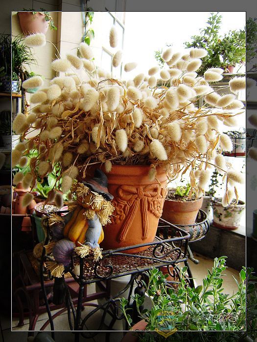 瞧,小兔子干花不错吧?和红陶盆很搭