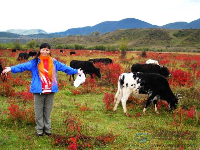 回乐乐:这是在云南去香格里拉的路上新开发的还没被人工修饰过的原始景点叫羊塘曲,满地开放的狼毒花和牛群,还有牛皮筏子沿河欣赏景色,很惬意.QIANMIA前面几张是在牛皮筏子上抢拍的,不太清楚。离这里不远就是著名的国家森林公园普达措。那里值得一去,有空带着你未来的小牛宝宝去度假吧。:loveliness: