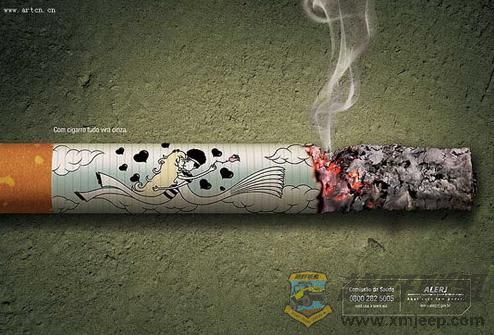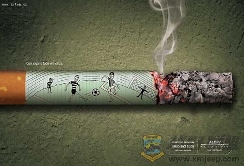 With cigarettes, your life goes to ashes. 吸烟会烧毁你的生命