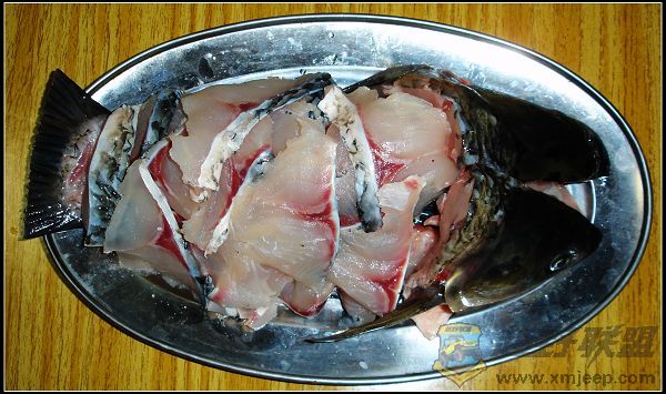 8 C- h- d( O+ ^# X( B2 C1.jeeplive.com 1、1500克左右的草鱼一条,将鱼肉、鱼骨分离,鱼骨切块、鱼肉切片。