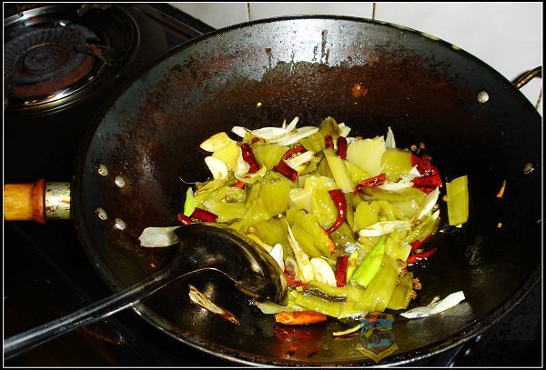 1 X, f9 _2 M m6 I7 M1.jeeplive.com 2、待红辣椒炒变色,调料炒出香味时将酸菜倒入,加适量盐继续翻炒。