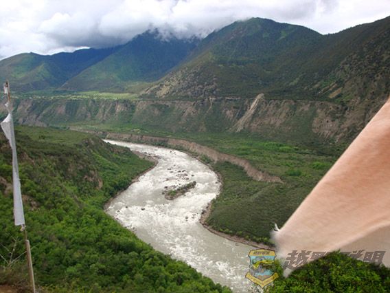 7 K& V+ F8 H$ I景区门口有个停车场,八一镇开到派镇的客车就停在这里。景区开有从派镇到直白村的旅游专线车,车次还挺多的。从景区大门到雅鲁藏布大峡谷观景点,还有相当距离,我们的车开了好长一段时间。观景台设在雅鲁藏布大峡谷的一个马蹄形拐弯处,雅鲁藏布江的江面从派镇的660米宽,开始慢慢收窄,江水受阻,变得暴躁湍急,翻起层层波浪。雅鲁藏布大峡谷的最窄处,仅次35米,大浪排空,所以雅鲁藏布大峡谷又是世界上水利资源最丰富的峡谷。