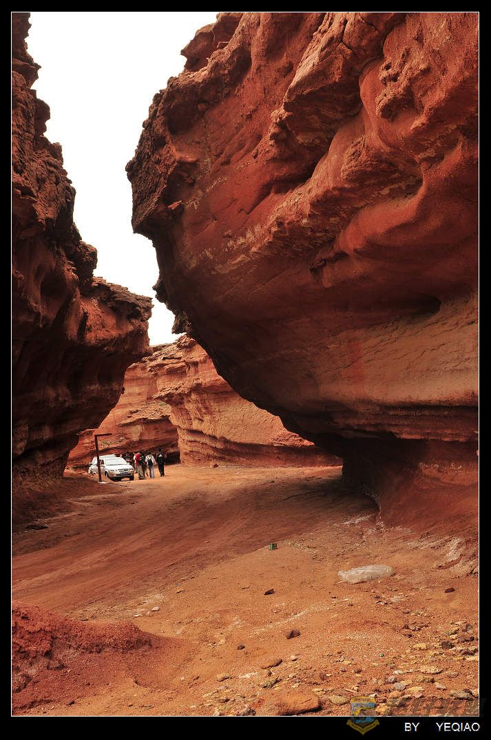 丹霞地貌为西部梦幻大峡谷披上了一层无际的褐红色。西部梦幻大峡谷的物质基础是形成于距今约7至9千万年前的晚白垩世的红色河湖相砂砾岩,即侏罗纪至第三纪的水平或缓倾的红色地层,这种地层含有红色氧化铁,多由坚硬而厚的砾石、砂石组成,水流侵蚀后,产生许多断痕和节理。1.jeeplive.com/ ?& M- u: \: L' ^9 W