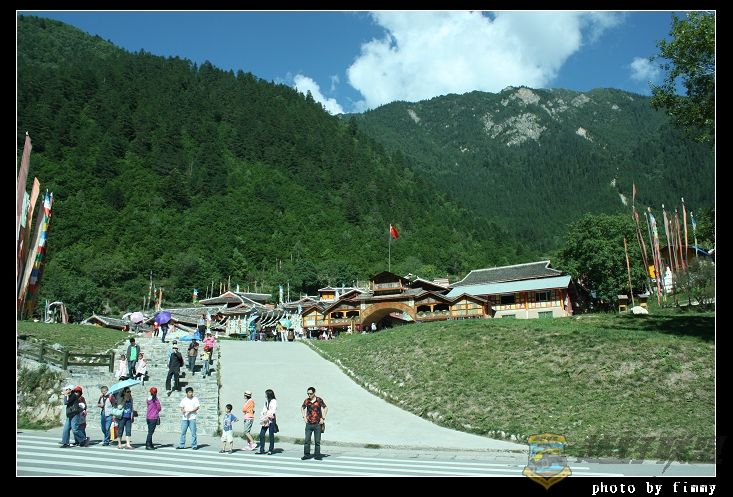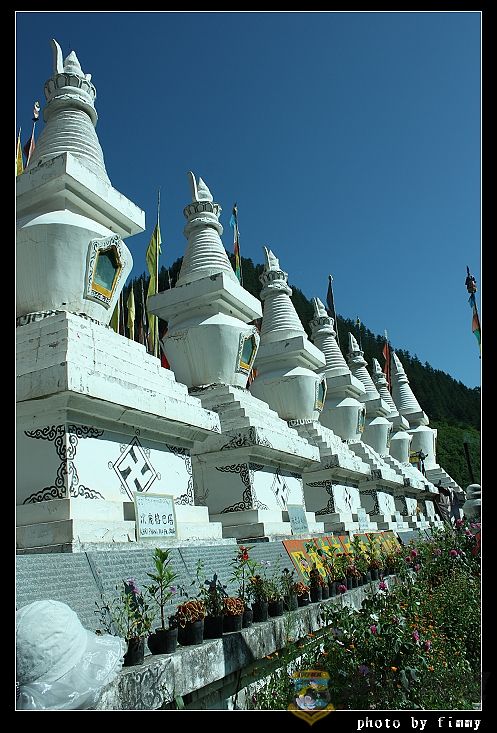 村寨前有一排白塔.一个喇嘛.向所有过来的旅客发拜拜用的香.