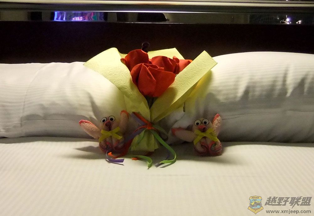 酒店设施不错且服务细致。知道是蜜月旅行,特地在床头摆了一些花样。