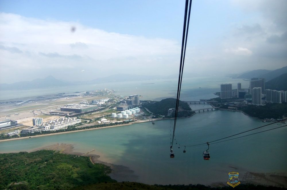 索道很长,层层叠进。鸟瞰可见香港机场及加油站。