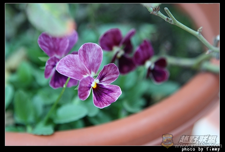 白微里的玫瑰红色角堇