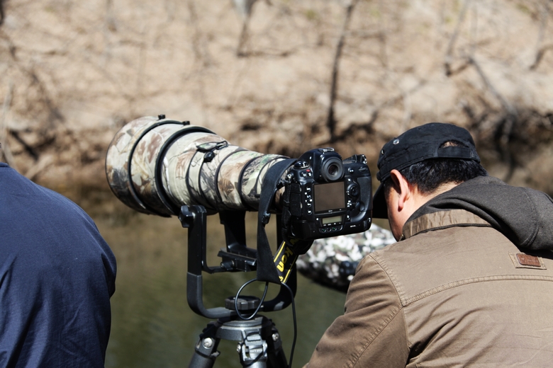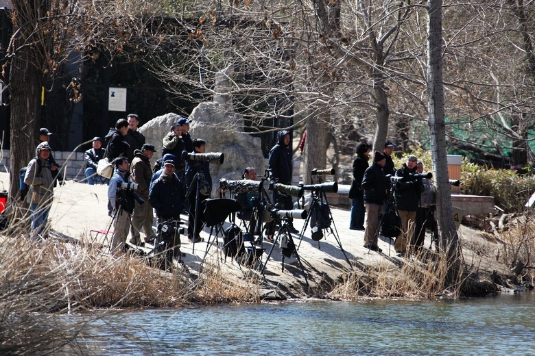 在天鹅湖畔遇到一队拍鸟的大炮摄影团