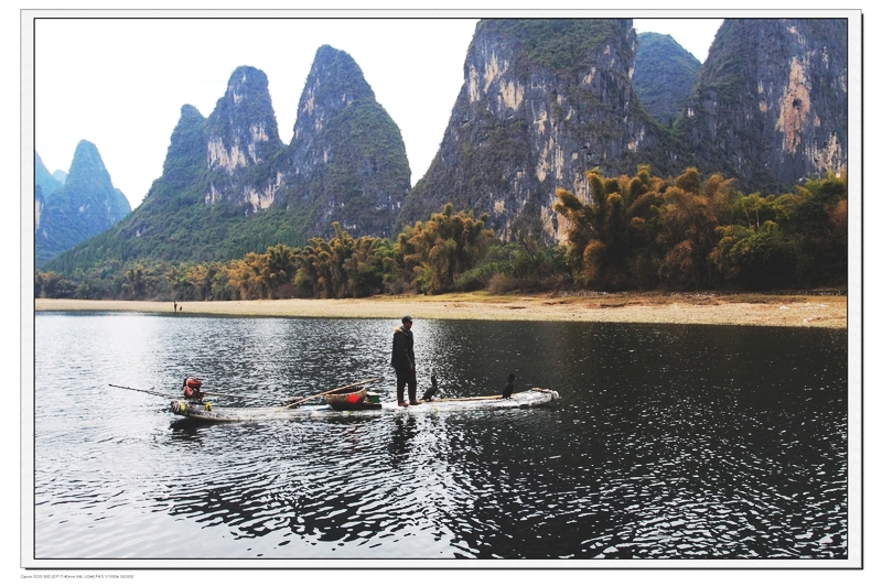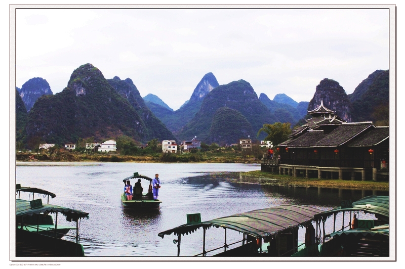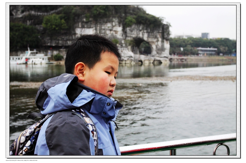 (妈妈:游完世外桃源,我们还坐船游览美丽的漓江——兴坪渔村,这可是这次桂林之行的重头戏,怎么能漏掉呢!)