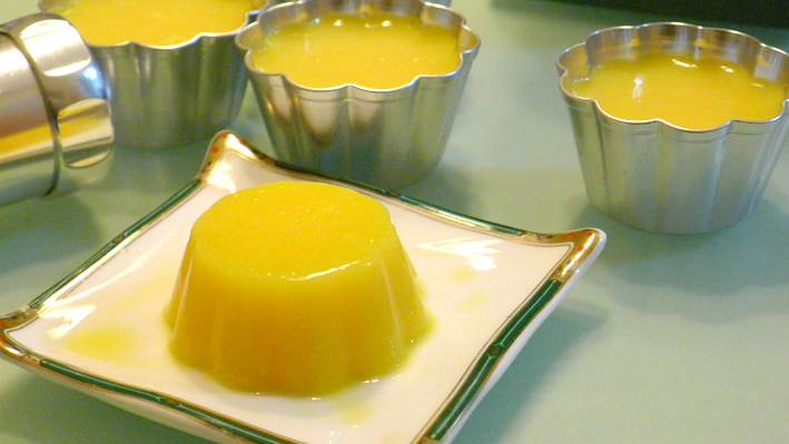 加一张,自己做的布丁,削了几个芒果肉加在里面。