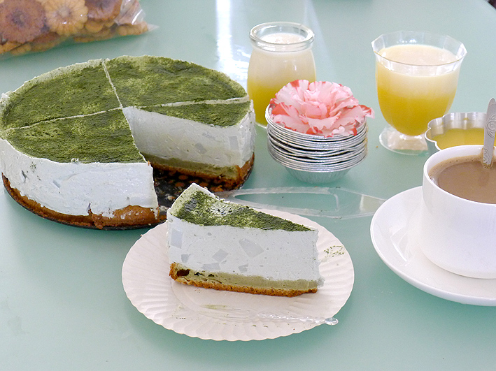 再加一张,自家酿的酸奶做的绿茶口味的酸奶慕斯,底部加了一层自己做的蛋糕还加了布丁哦。