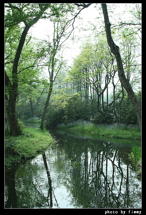 穿过路旁的云杉。跨过一道桥,这里就是太子湾公园咯!桥上拍哒!右侧就是马路
