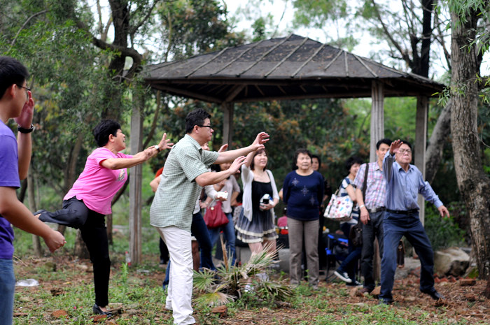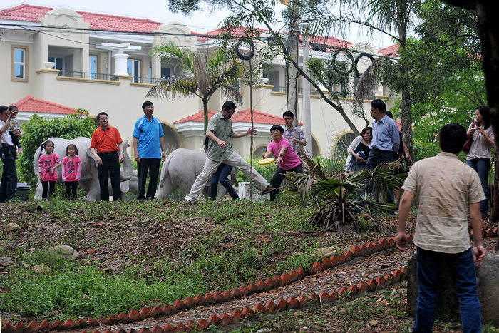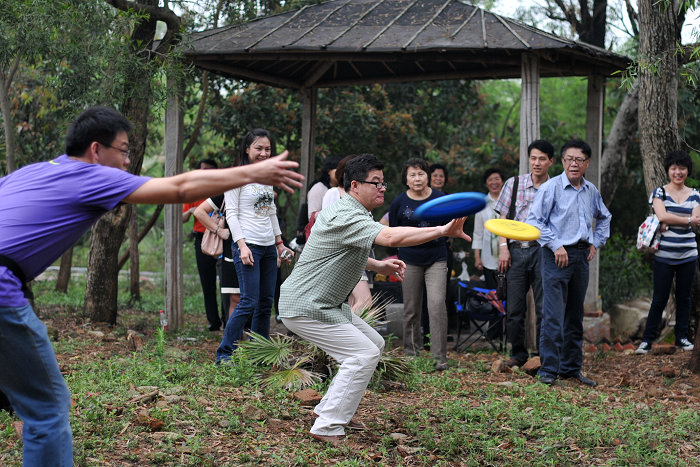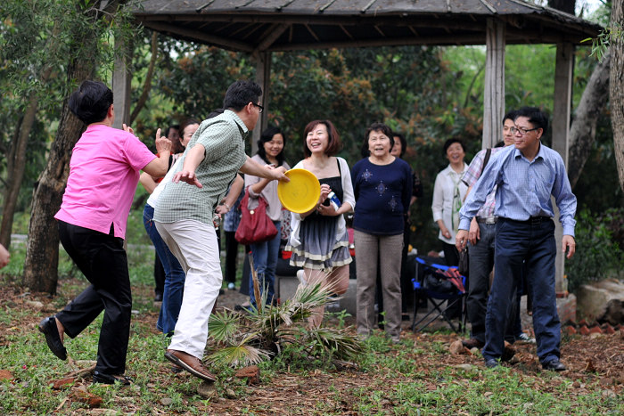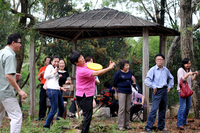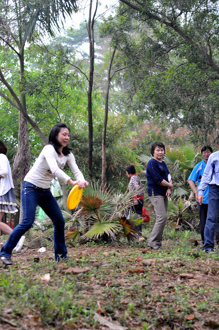 ( B3 x O4 _/ j7 X吃喝之余,一场飞碟运动会也悄然展开了,男女老少的热情参与情景是俺始料未及的, 感动啊。。。或许,因为没有风景,才让我们有机会制造更多“风景”,让大家有更多的互动。哈,忘却风景,你会发现每个人都是一道快乐的风景。。。