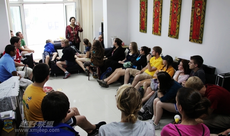 中美文化艺术交流的使者光明天使基金主席、光明天使荣耀艺术团的团长MARY向远道而来的美国音乐家介绍天使艺术团