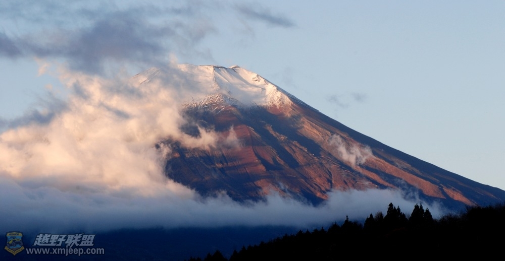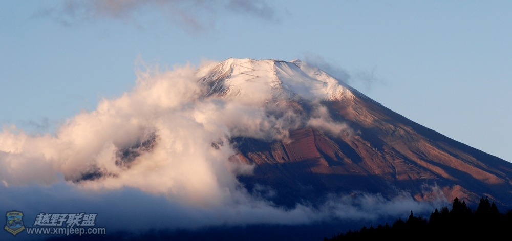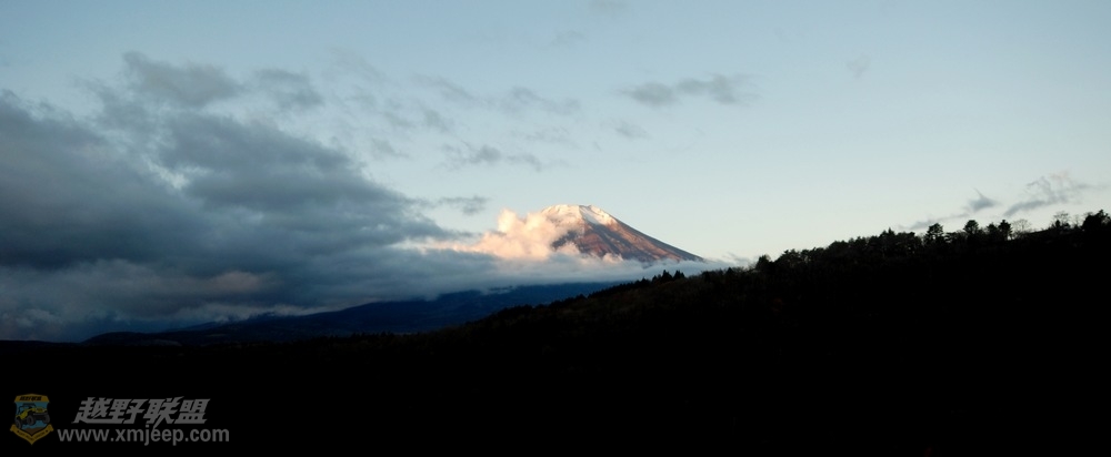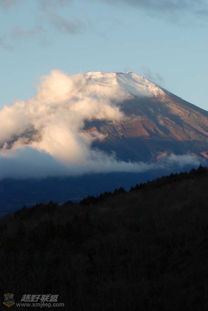 当晚,我们住在山下的温泉宾馆,第二天一早打开阳台,嘿,看到了晨曦中的富士山