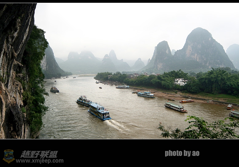 $ B& X/ _' y" @0 I, D& f- J当然从阳朔到桂林走国道或高速一个小时就能搞定,沿途峰林不断,也不失为一种选择。
