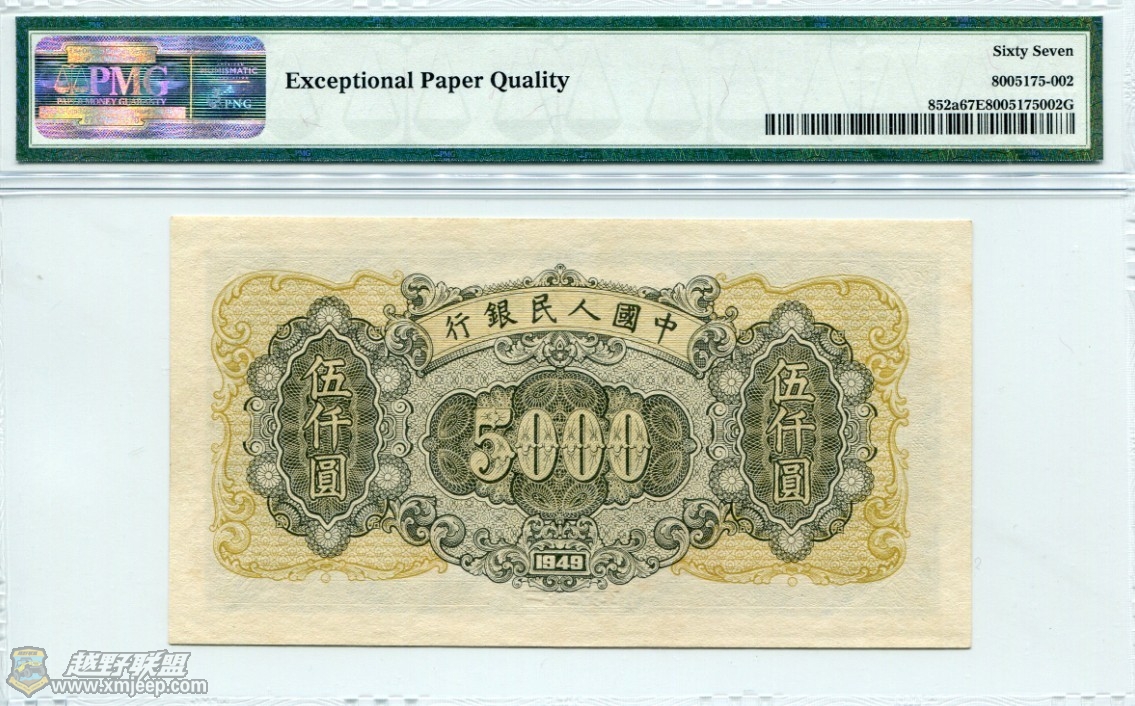 " [! q1 q4 ^' [7 a& q+ J0 uA、UNC 67-70 被称为一流珍品,无论在纸*币的保存状态或是印刷的精细度与置中比例上都要完美无暇,在公元1950年以前发行的纸*币中显少能见1.jeeplive.com. f0 Y2 H8 _/ t