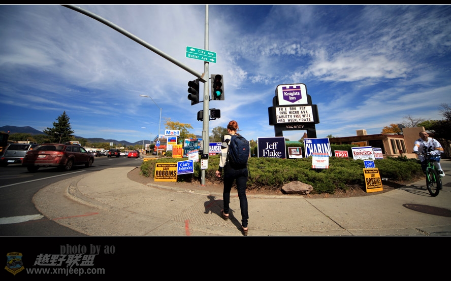 & L/ U# t7 o+ j- ?8 ^FLAGSTAFF弗拉格斯塔夫城也算是个旅游或中转城市,向东抵达拉斯维加斯,向南到圣多娜,向北到大峡谷另一个著名城市佩吉,其中亦可拐向大峡谷国家公园。