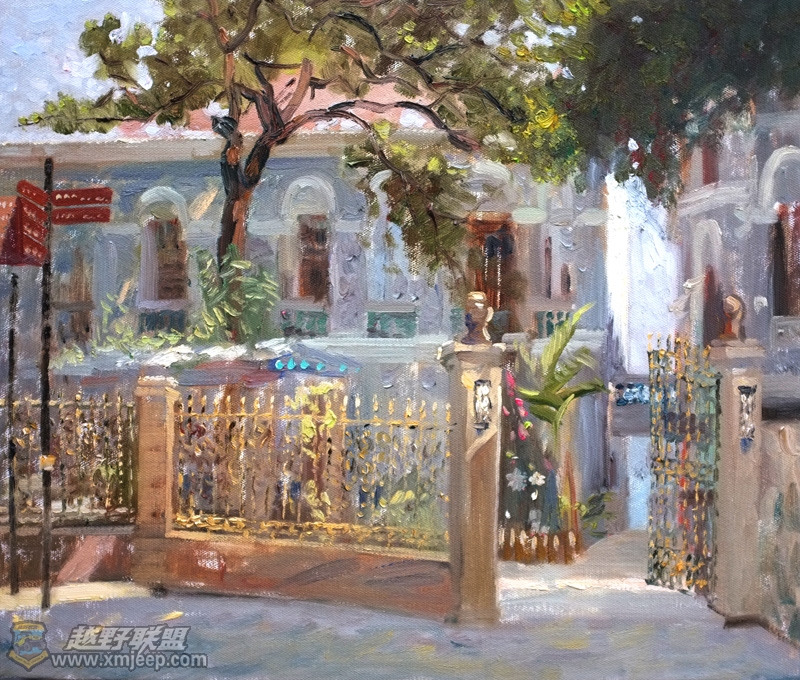 8 ]: {2 l7 f4 \8 q1.jeeplive.com读着他写生创作的鼓浪屿系列作品,我被震撼了。传奇的色彩,气派的构图,每一处细节的关注都浸淫着他一笔一画的艺术修养,读他的画,仿佛进入了一片梦幻世界,色彩与阳光在树林和小草之间昵语;童话与小鸟在房顶和鲜花之间编织;黄昏与晨雾在天堂般的乐曲中悄然结盟……你几乎不得不与他一起分享艺术创作的快乐,不得不被他的艺术内涵所震撼。当然,这一切的描绘,是基于他几十年的写生,几十年对大自然的眷恋。当我们看到他一幅幅画得如此潇洒如此深情的油画,就可以读出他的内心,恬淡而优雅,纯净而浪漫。