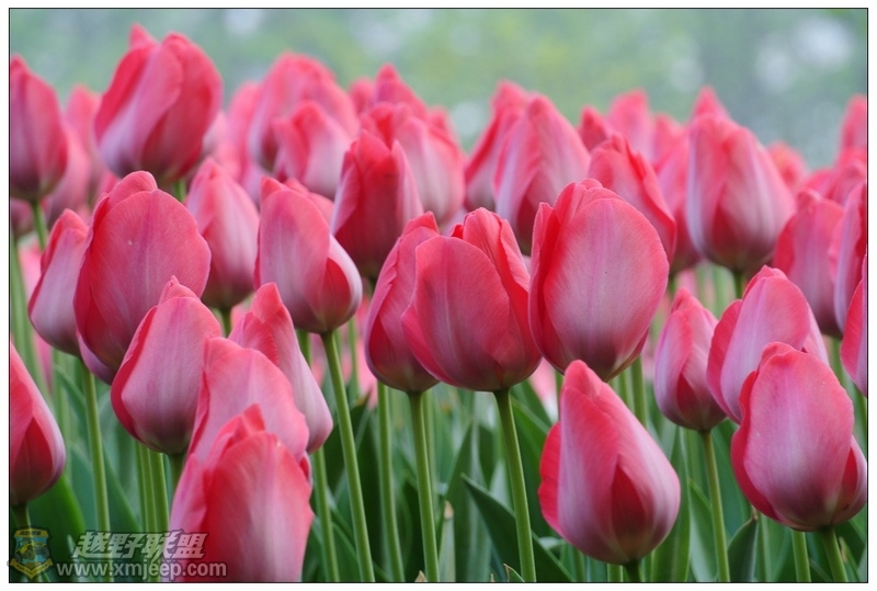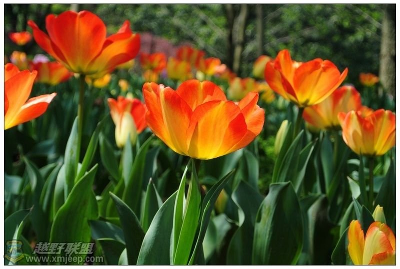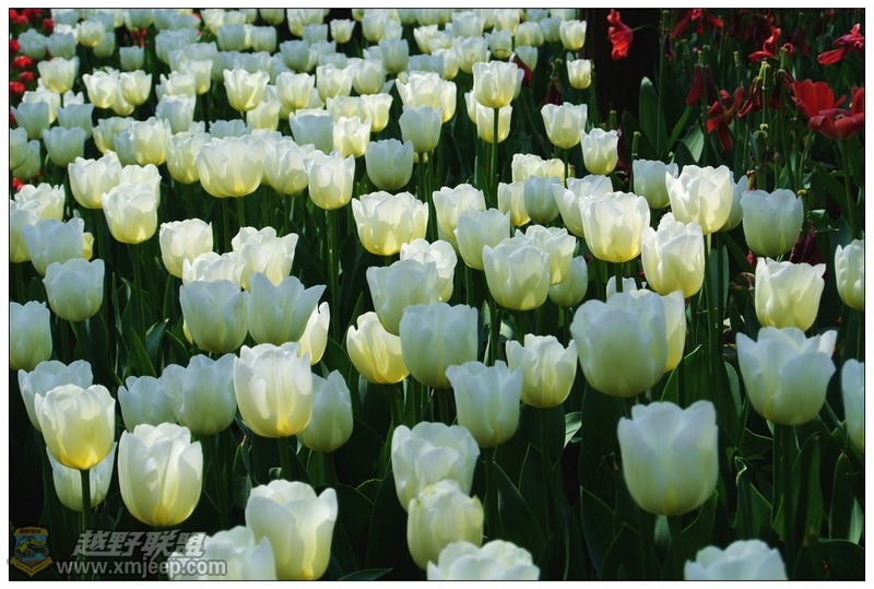 清晨初升的太阳照耀下,成片的白色郁金香宛若一盏盏点亮的灯笼般,美仑美奂——