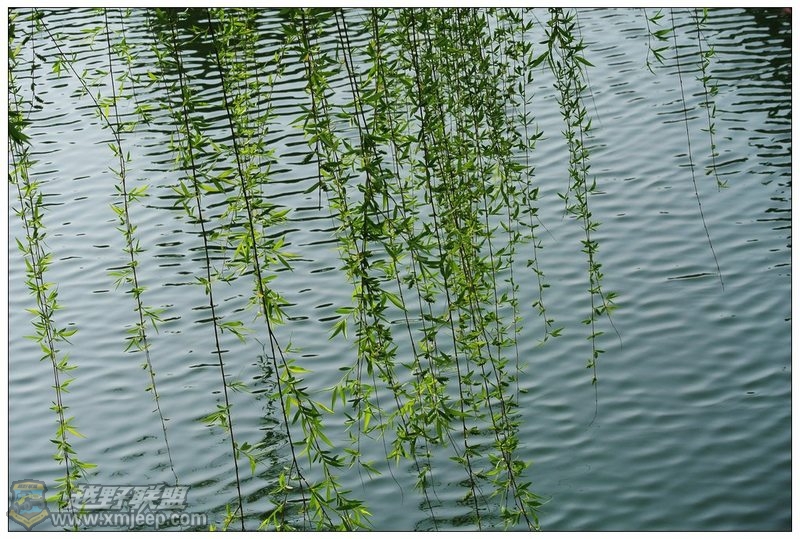 微风中,湖面泛起丝丝涟漪,柳条轻垂——