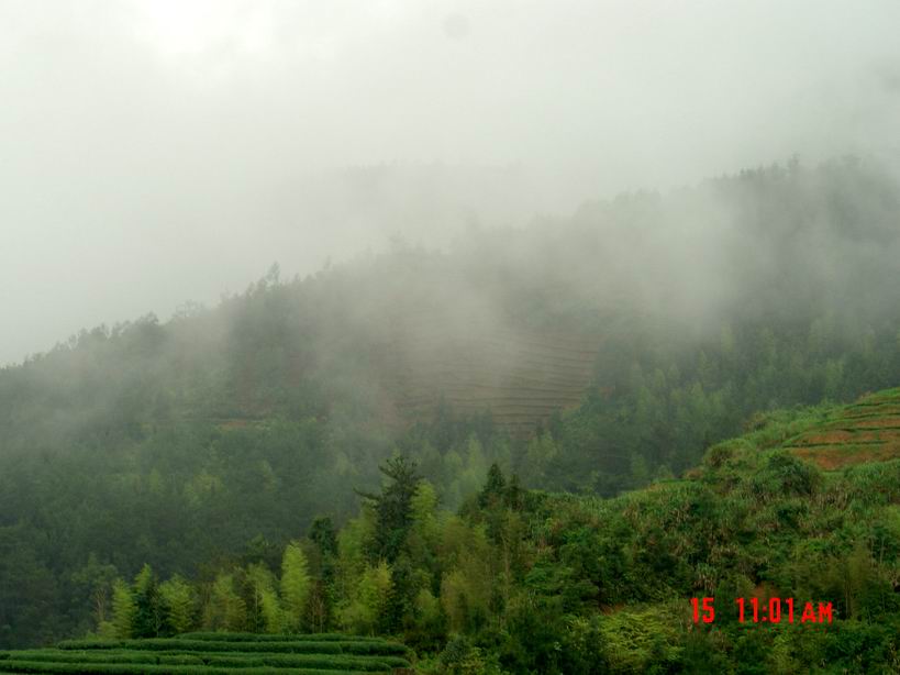 雾蒙蒙的,是下雨了吧。是不是满山的茶香四处飘啊,下次要是还组织去,俺有空一定跟上。
