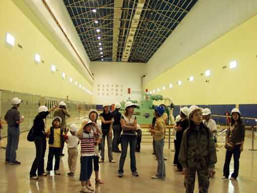 大伙戴上头盔,经过WJ站岗的洞口,参观水电站的设施.